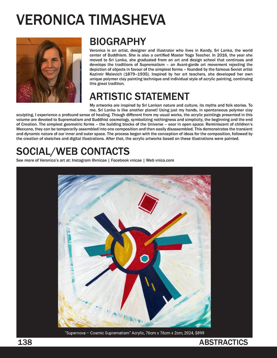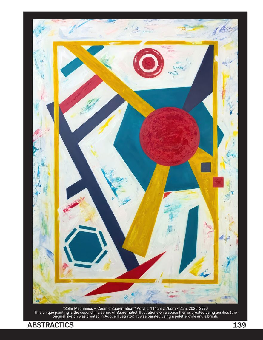 My works Solar Mechanics and Supernova from the Cosmic Suprematism series were published in Issue 001 of Abstractics: The Journal of Abstract and Nonrepresentational Art. You can view and download a free PDF (142 Mb) right on my website or order a high-quality printed copy.