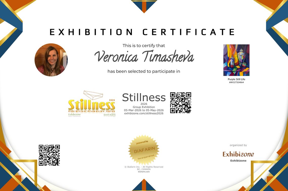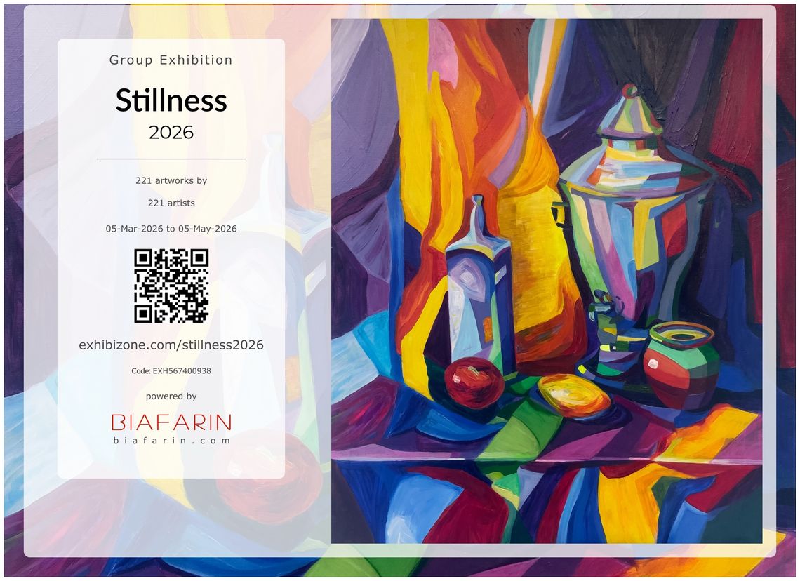 My acrylic painting Purple Still Life has been selected for Stillness 2026 online exhibition (March 5 – May 5, 2026), organized by Exhibizone and powered by Biafarin, and is featured on ARTSY.net. It has also been selected for 2026 Showcasing All Women Artists exhibition (March 5-31, 2026) by Las Laguna Art Gallery (California, USA).