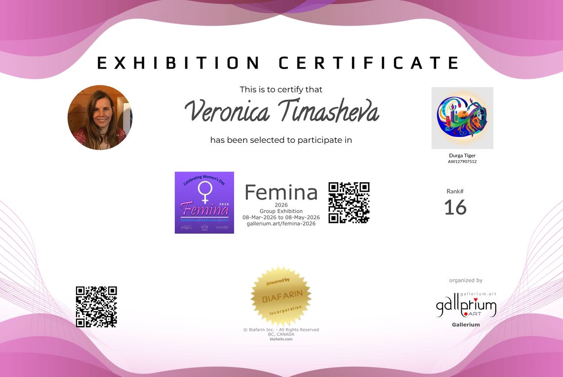 My digital illustration Durga & Tiger is now being showcased at Femina 2026 exhibition (March 8 – May 8, 2026), organized by Gallerium and powered by Biafarin platform. This work is now available for purchase as a print on ARTSY.net.
