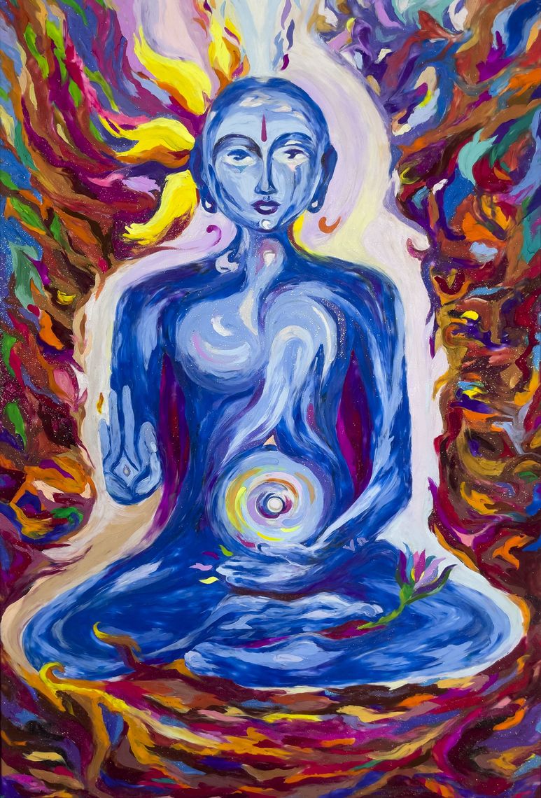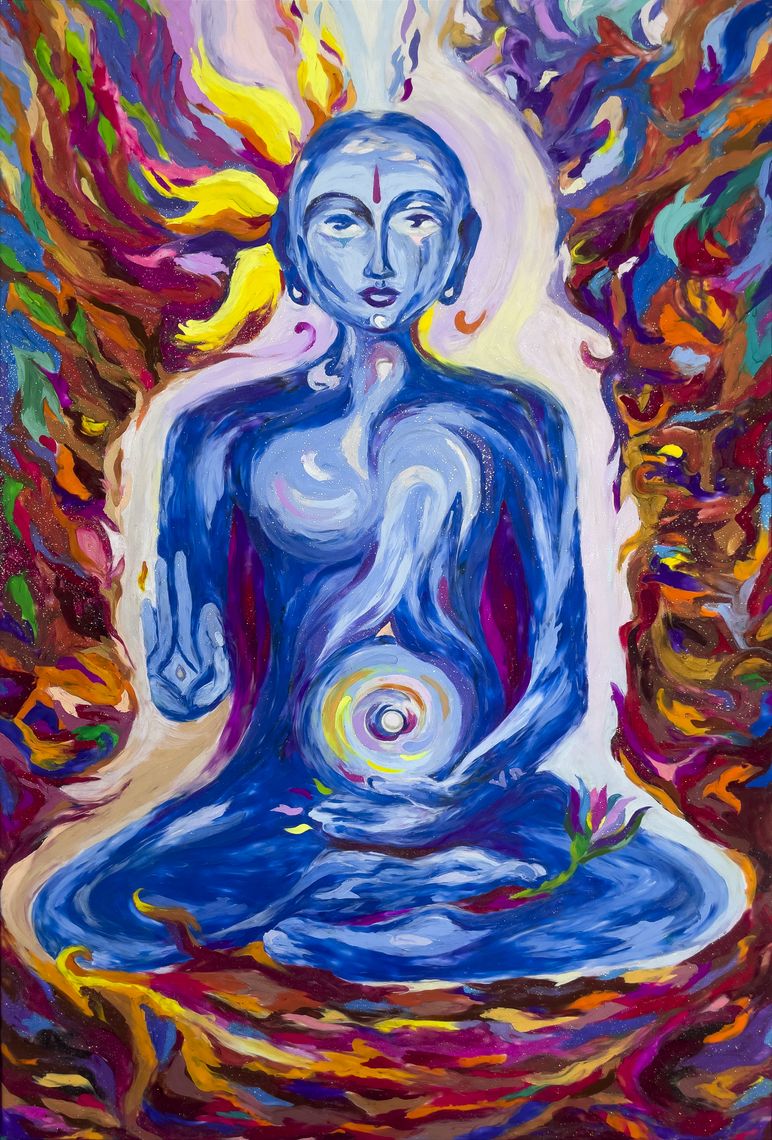 Nammalvar is one of the twelve Alvar saints and is considered a divine descendant of Lord Vishnu himself. He is also highly regarded as a great mystic of the Vaishnava tradition. It was under this same tree that he attained samadhi, and after four thousand years, he taught the secrets of Yoga Rahasya to the great sage Nathamuni as a spiritual guru. Then, in the 20th century, Krishnamacharya – the "grandfather of modern yoga" – received and revived the Yoga Nathamuni’s Yoga Rahasya while meditating on Nammalvar under the same sacred tamarind tree, thus continuing this mystic tradition. With whirling Nabhi chakra, Nammalvar radiates divine love and healing energy to all. I sculpted this with my hands, following the flow of yogic energy.