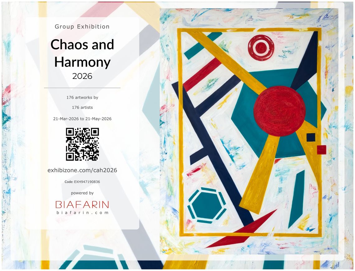 Solar Mechanics was also selected for Chaos and Harmony 2026 exhibition (March 21 – May 21, 2026), organized by Exhibizone on Biafarin platform, and is featured on ARTSY.net.